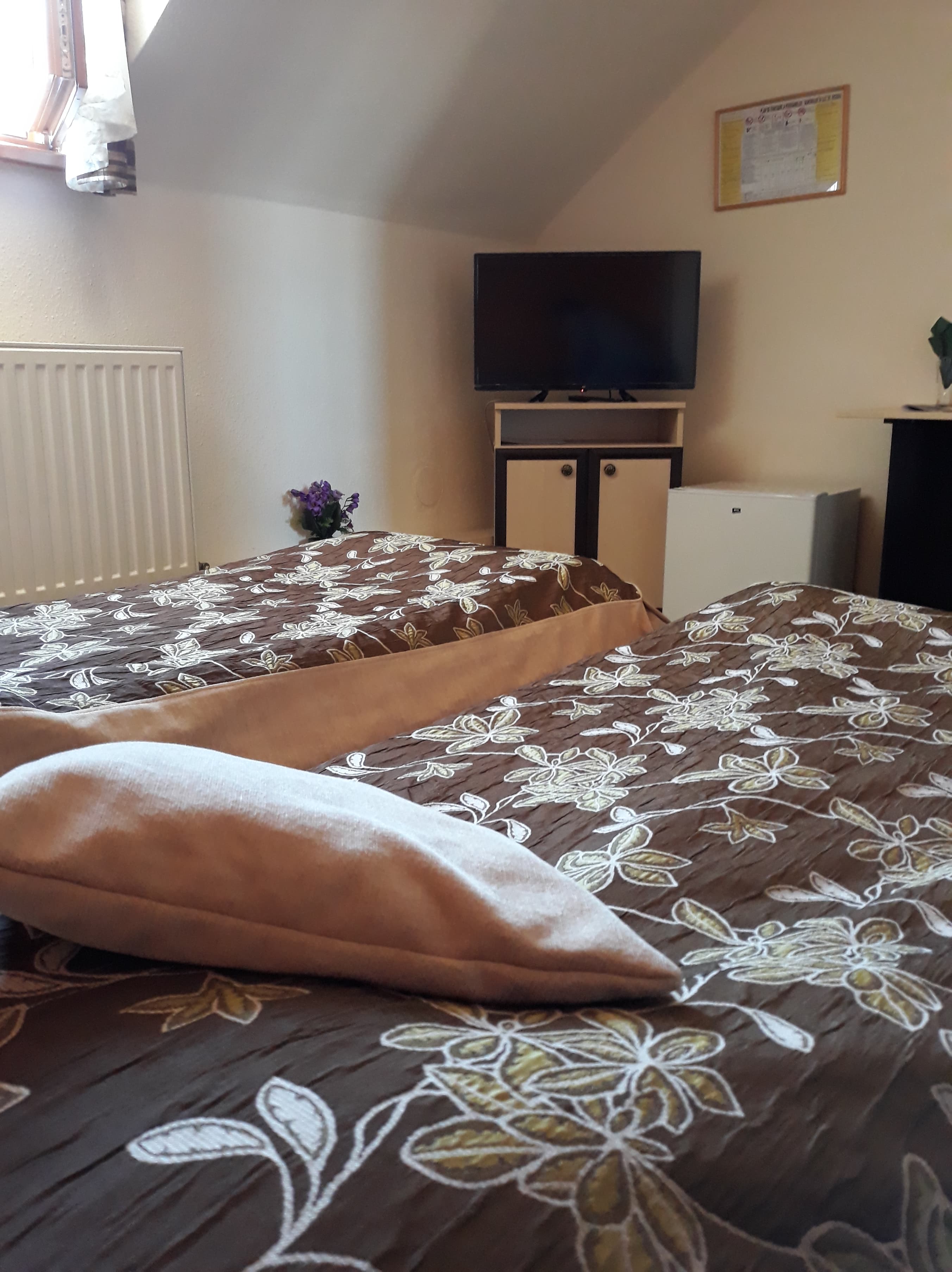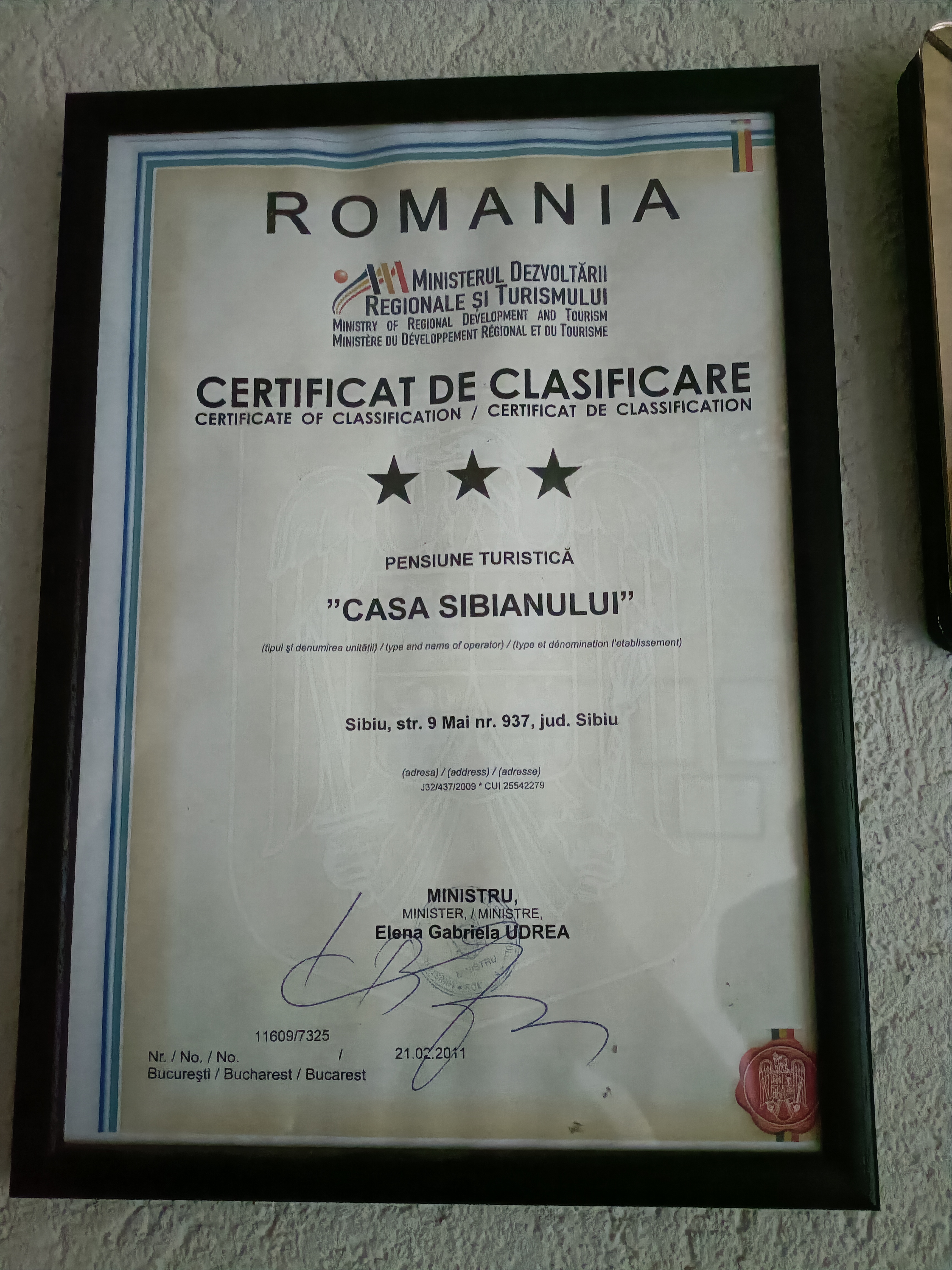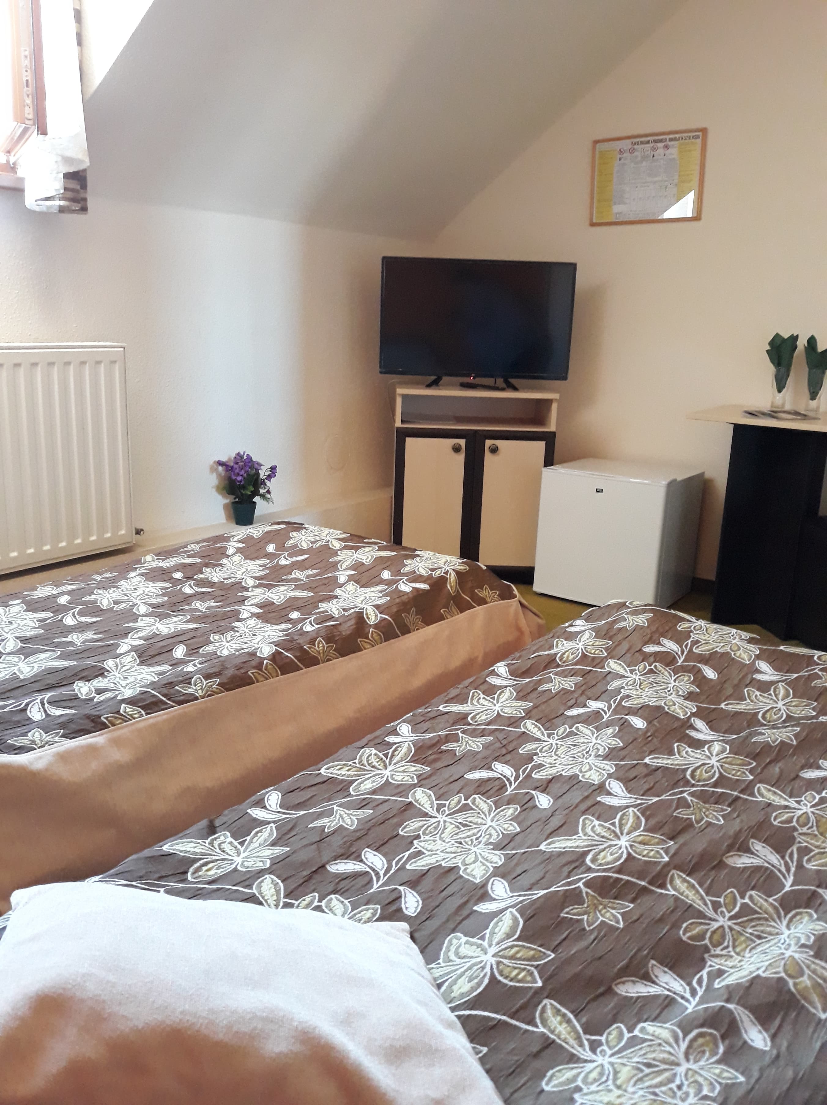 Clasificare: Pensiune *** (3 stele) Facilitati pensiune: parcare interiara, curte interioara cu terasa, wifi, fax. Facilitati camera: baie proprie, wifi, TV, uscator.